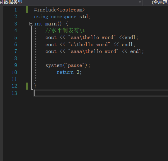 (注意:/t是8位但是你要知道它不是对于前一个字符8位,而是对于一个面板来说哦)