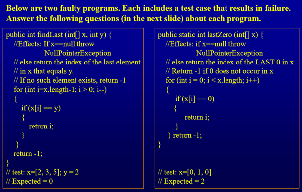 作业要求很简单,就是对这两个函数进行分析,考察对于fault、error、failure的理解,具体作答如下: