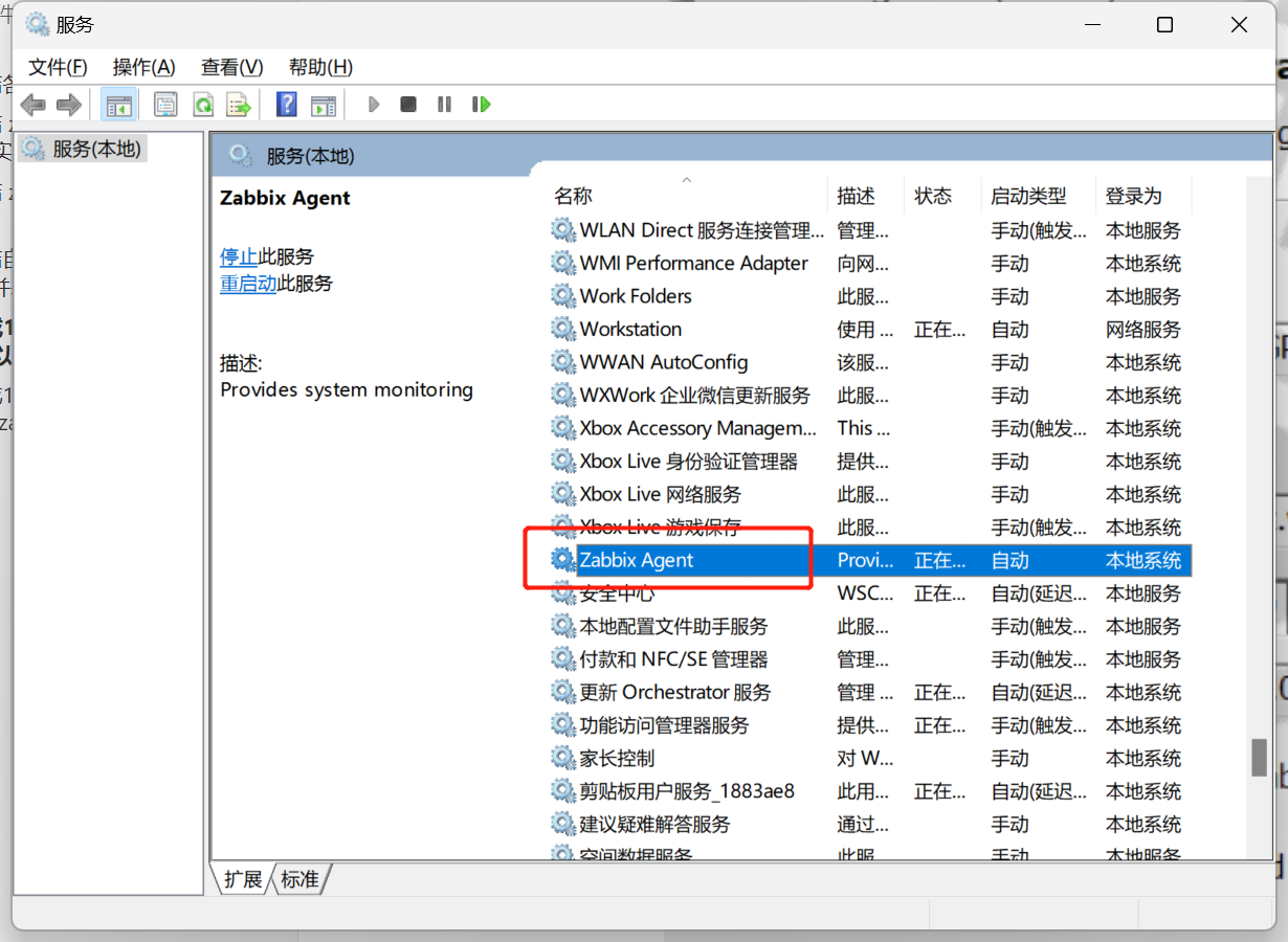 然后运行框输入services.msc在服务中可以看到一个zabbix-agent服务在运行