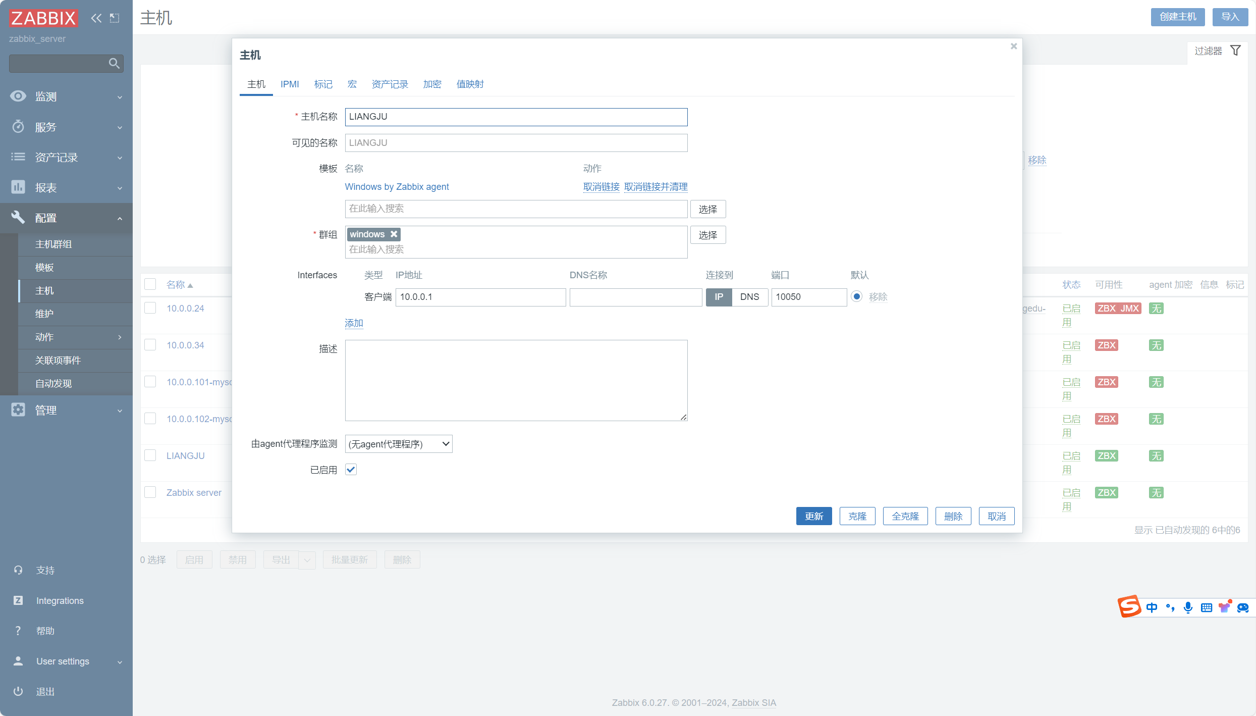 6、完成1键脚本,可以基于zabbix api添加zabbix agent到zabbix web。