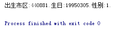print('出生市区:{}.生日:{}.性别:{}.'.format(sid[0:6],sid[6:14],sid[16:17]))
