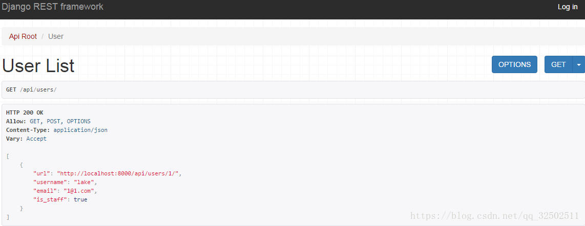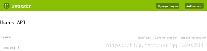 到此处,运行项目后 http://localhost:8000/api/users/ 的效果如下图,登录后可以 add, create 和 delete。下一步就是生成API的swagger文档关键步了,它显得非常简洁。