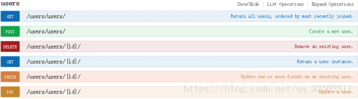 此外,Django Rest Framework 3.5 使得我们在操作旁边添加提示变得极为容易,只需要在类的文档字符串中对应合适的方法名称添加你想要的文字就行了。