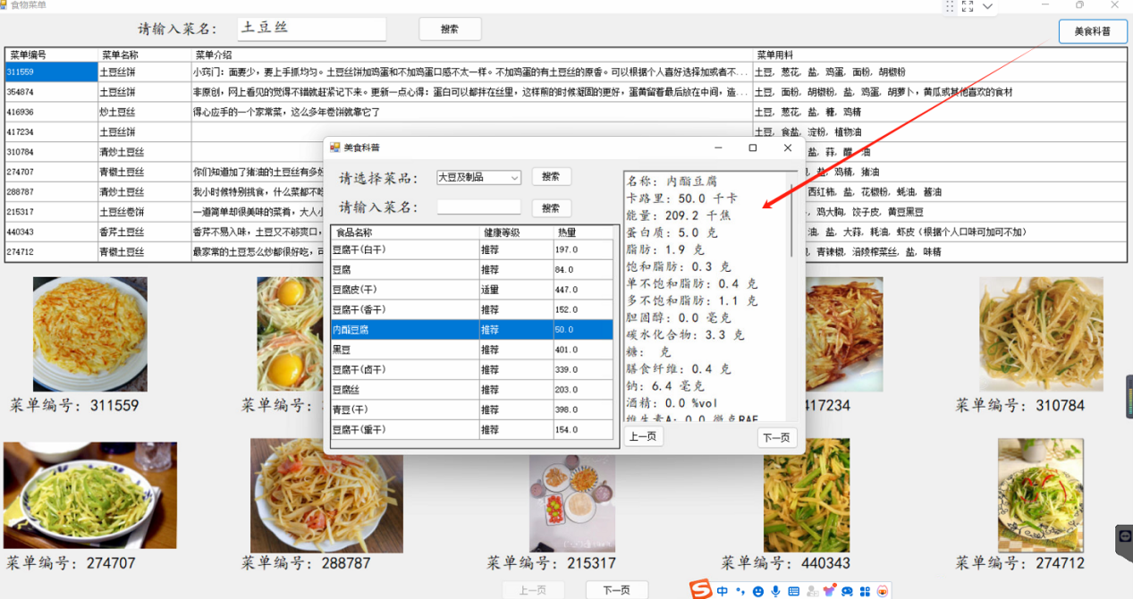 可以根据上面的输入框进行搜索各种菜品。右上角有对应的菜单科普,点击如下: