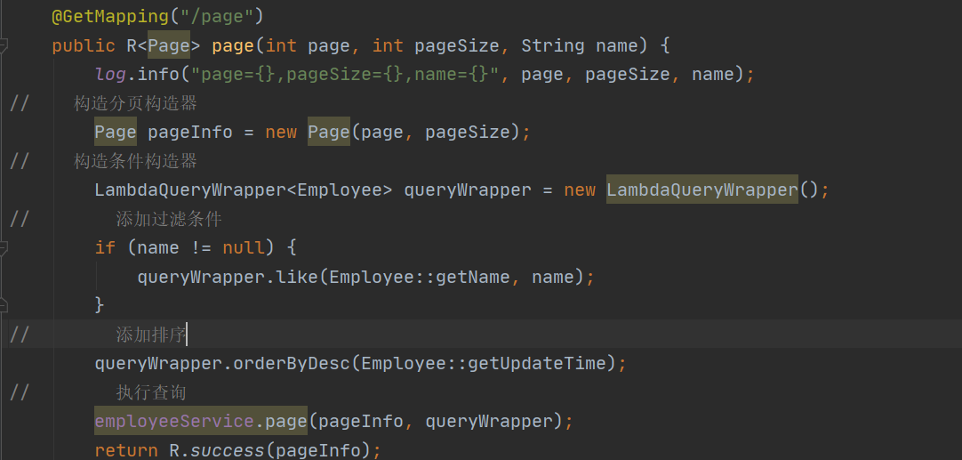 LambdaQueryWrapper<Employee> queryWrapper = new LambdaQueryWrapper();