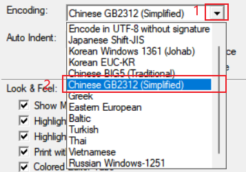 点击Econding右边的下拉按钮选择Chinese GB2312