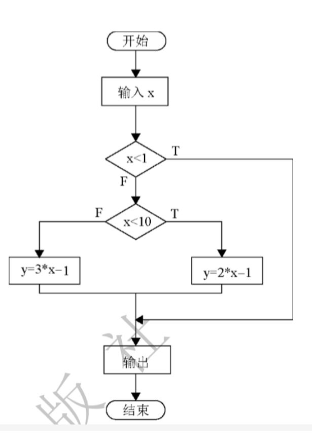 #include<stdio.h> main() { float x,y; scanf("%f",&x); if(x<1) y=x; else if(x<10) y=2*x-1; else y=3*x-1; printf("y的值为%.2f\n",y); }