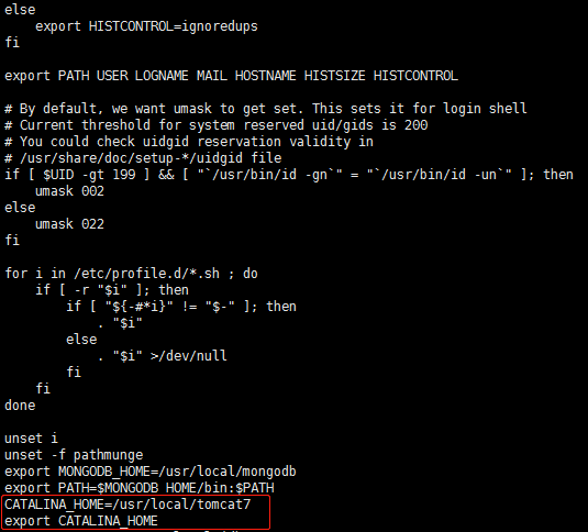 (1)执行上述命令进入profile文件。按“shift+g”到达文件最底部。然后按键盘“i”键进行修改