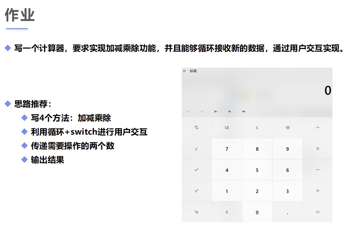 System.out.println("请输入要继续的指令:+、-、*、/、%、clr、e");