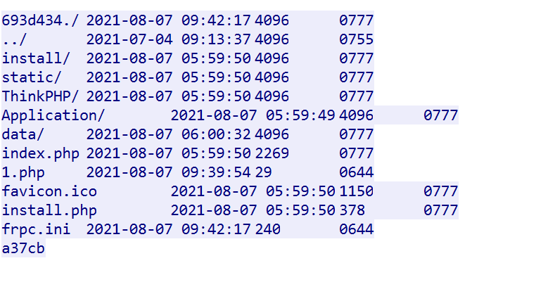 可以看到一个frpc.ini,所以我们知道黑客的代理工具是frpc