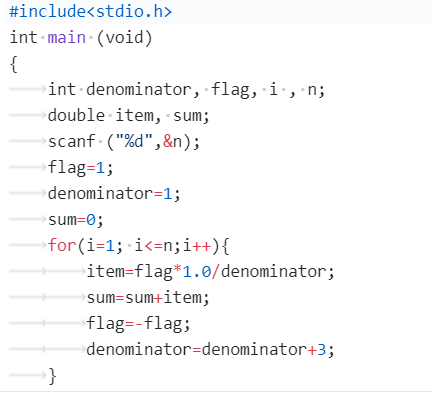 | 数据表达:定义了整型i,n。双精度浮点型sum。 | |