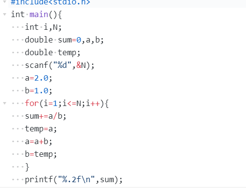题目内容:计算序列 2/1+3/2+5/3+8/5+... 的前N项之和。注意该序列从第2项起,每一项的分子是前一项分子与分母的和,分母是前一项的分子