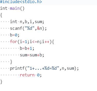 题目内容:要求读入1个整数X,然后输出1+2+3+...X 的和。