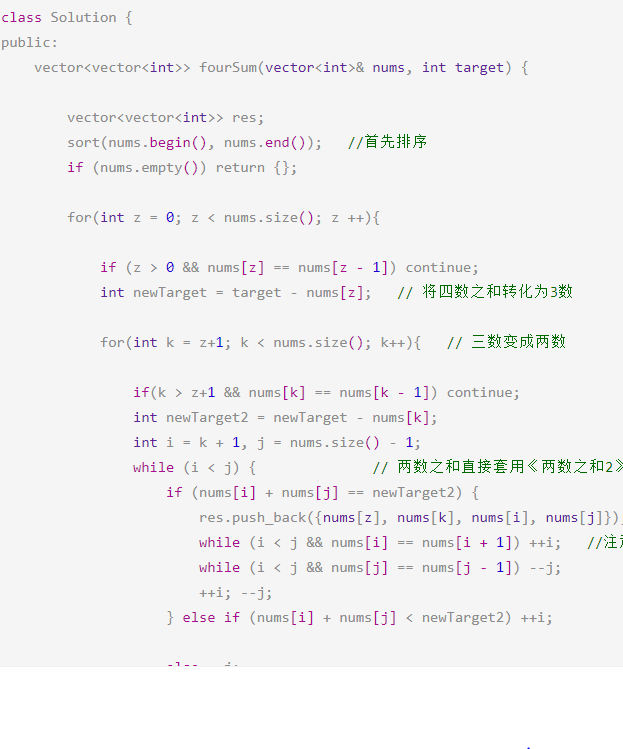 可学习之处:四数就是外部两层循环+内部双指针;三数之和是外层循环+内部双指针,