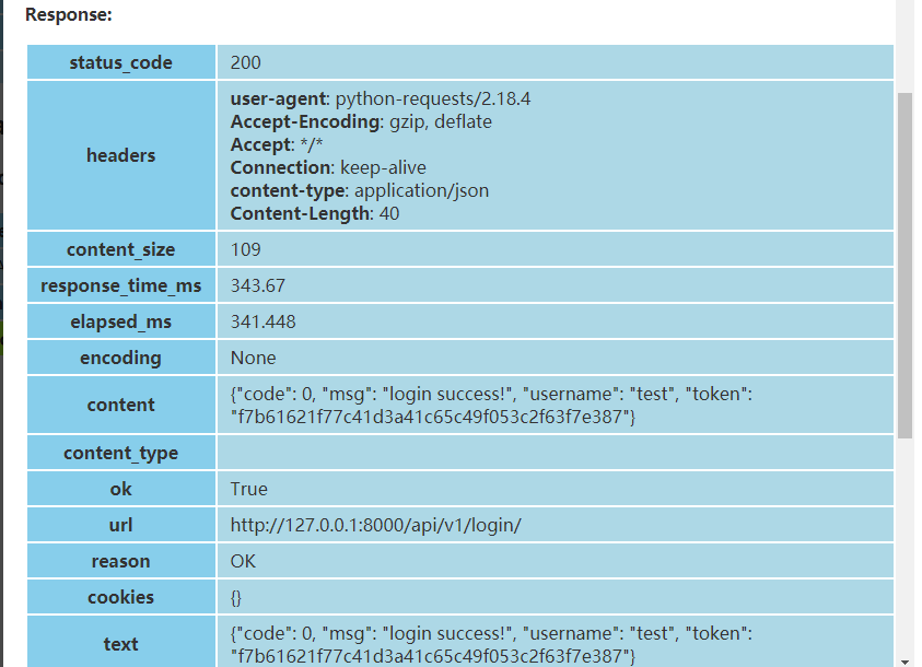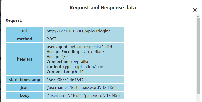 import requests url = "http://127.0.0.1:9000/admin/" headers = { "Content-Type":"application/json" } parmas = { "username":"test", "password":"a123456" } r = requests.post(url,headers=headers,json=parmas)