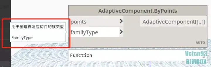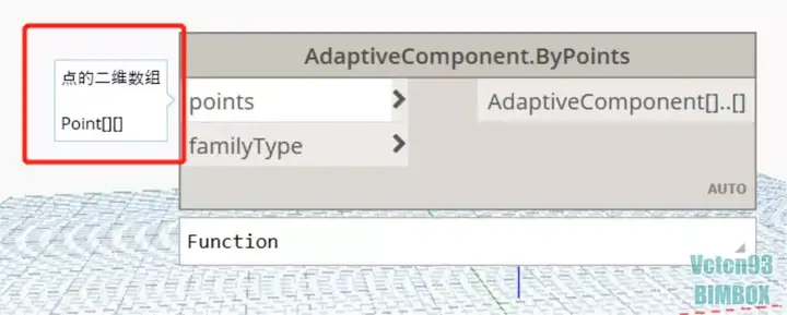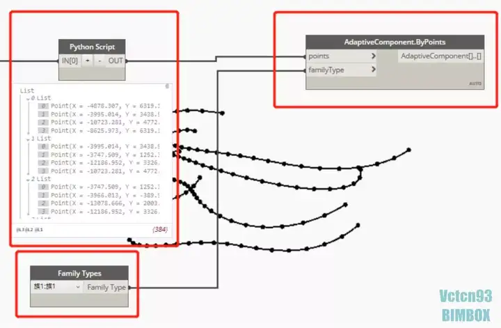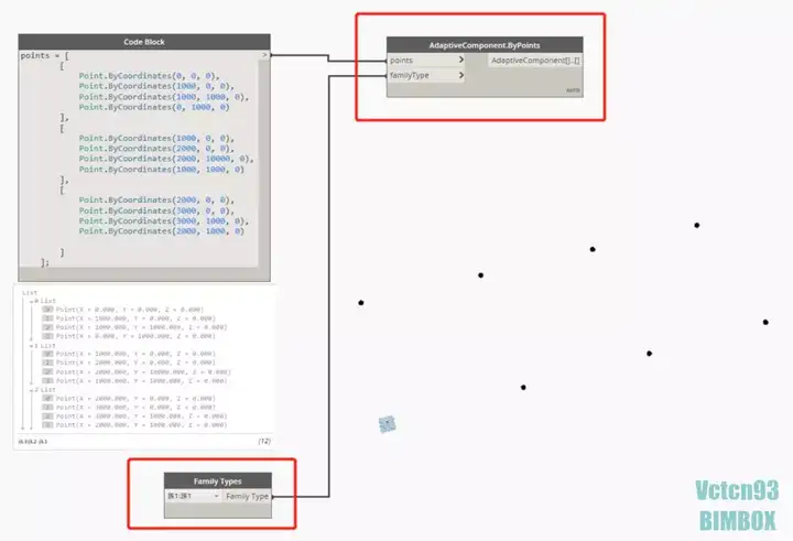 我们把数据点阵和族类型Family Types连接到AdaptiveComponents.ByPoints这个节点上。