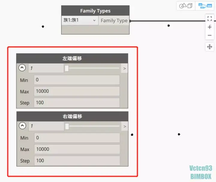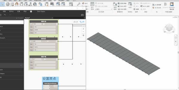 ➤ 新点阵通过 AdaptiveComponents.ByPoints 节点,输入到 Revit 中,我们便得到了左端偏移、右端偏移、嵌板个数、嵌板长度、嵌板高度,这五个数值可调的参数化构件了。