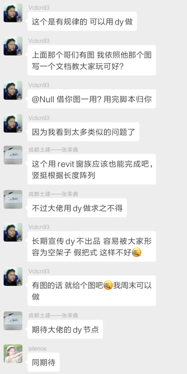 最近他一直在琢磨怎么通过Python编程和Dynamo带来更高的生产力,也经常在群里和大家探讨,回答教程问题,已经成了群宠。