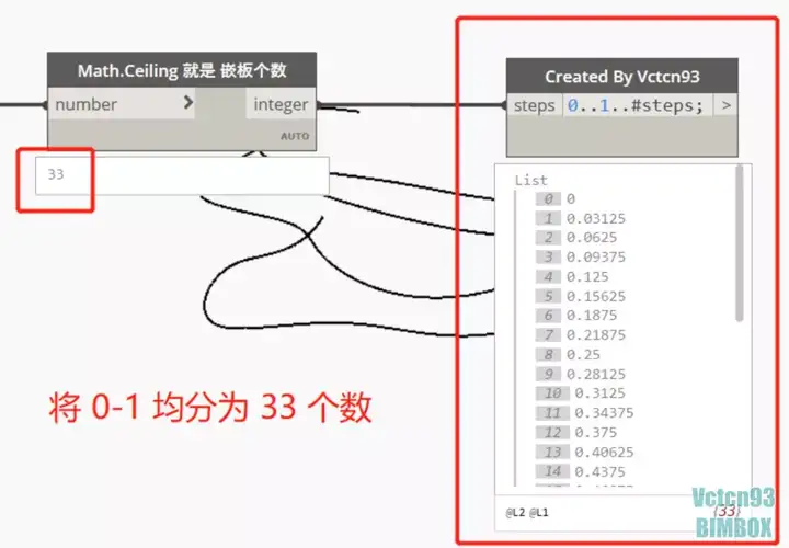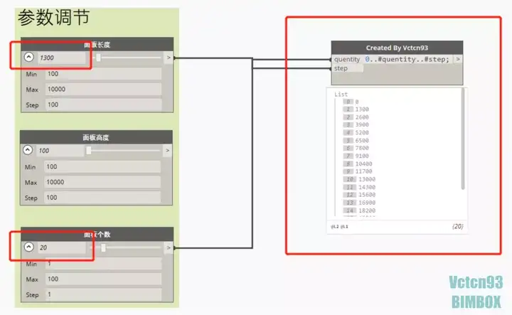➤ 接下来,我们要依照给定的面板长度以及面板数量,生成一个以面板长度为间距(step),以面板数量为个数的数组(list),创造需要用到的第一组点。