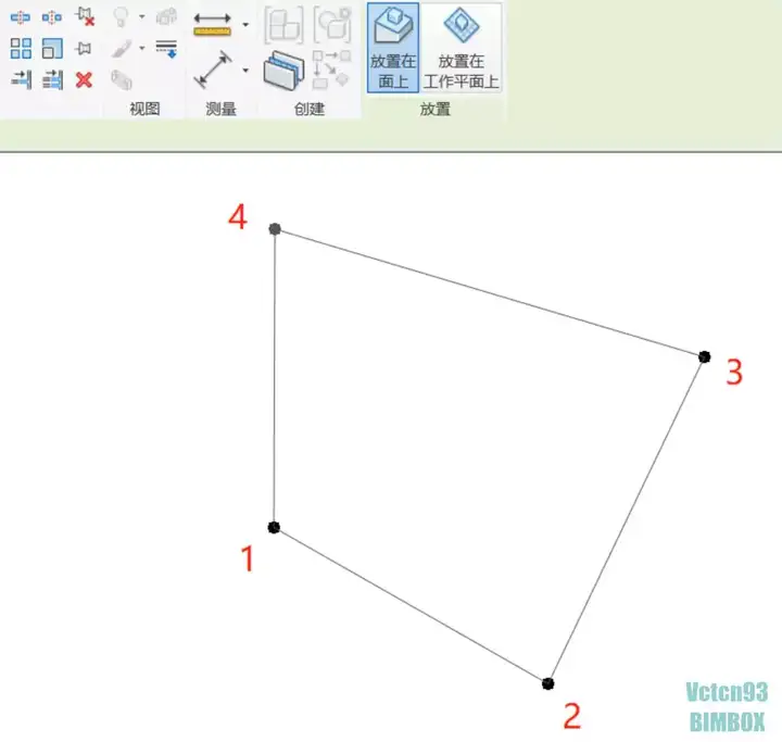 这四个点,就是我们所需要每生成一块嵌板所需要的点,点的顺序则是我们在 Revit 界面中放置嵌板的点击顺序。