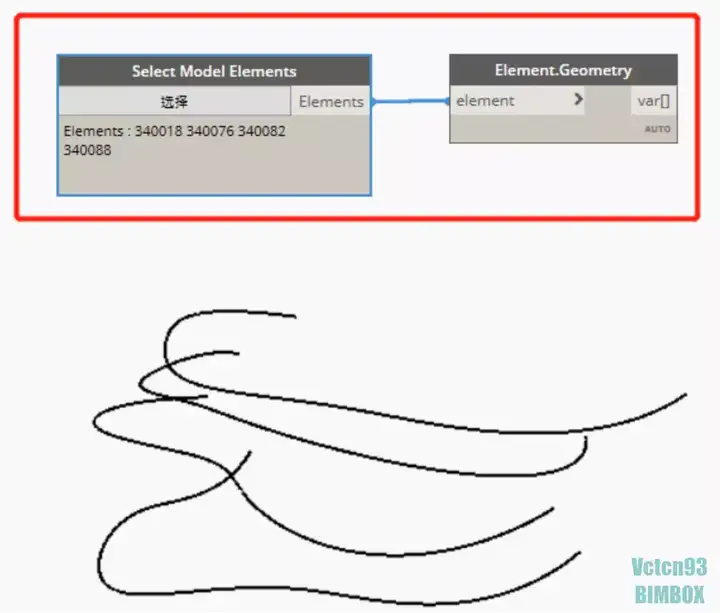➤ 接下来,再使用 Element.Geometry 的方式让这些线在 Dynamo 中可见,且能被处理。