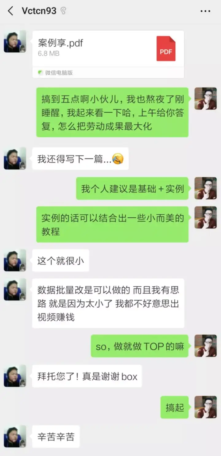 周六一早,我就收到了Vctcn93的微信,一看时间是凌晨五点发来的。本来答应周末慢慢搞的事,居然搞了个通宵。