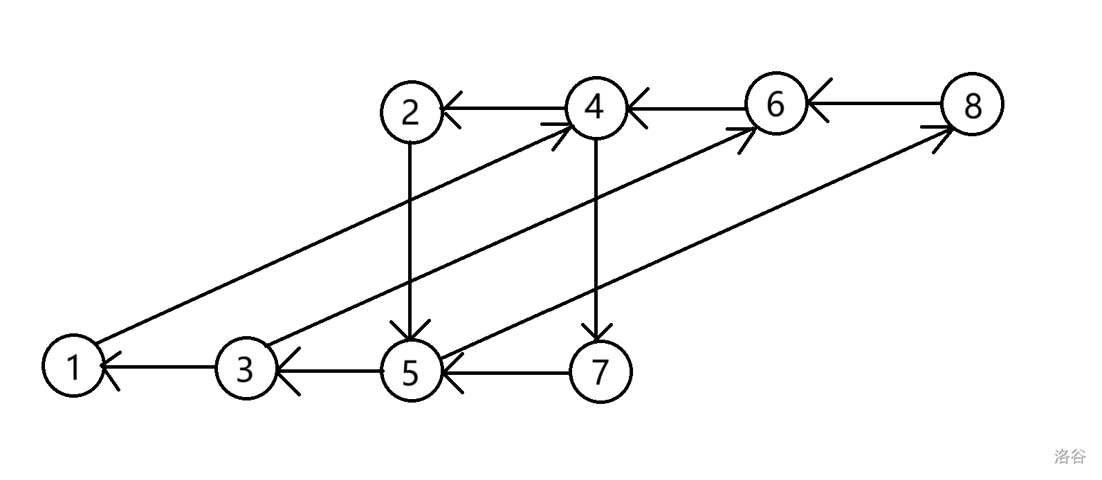 那么我们将点按奇偶性拉开,每一部分都会长成下面这样,这里以奇数为例,\(k=4,n=8\)。