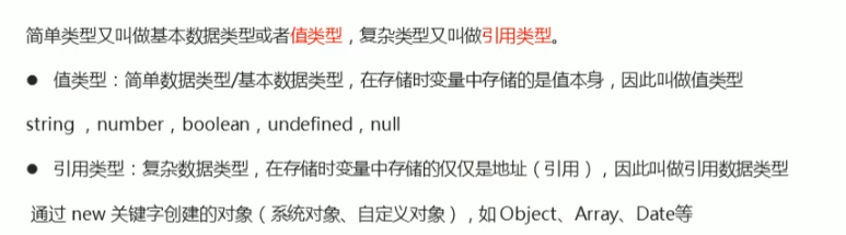 简单类型(值类型)和复杂类型(引用类型):