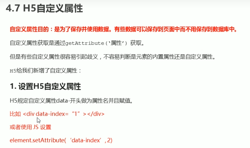 H5自定义属性: