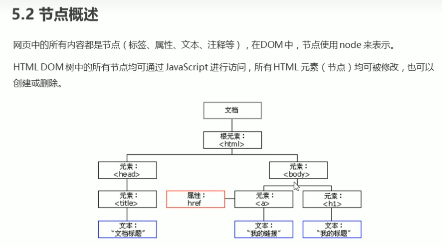 节点至少有nodeType(节点类型)、nodeName(节点名)、nodeValue(节点值)三个基本属性。