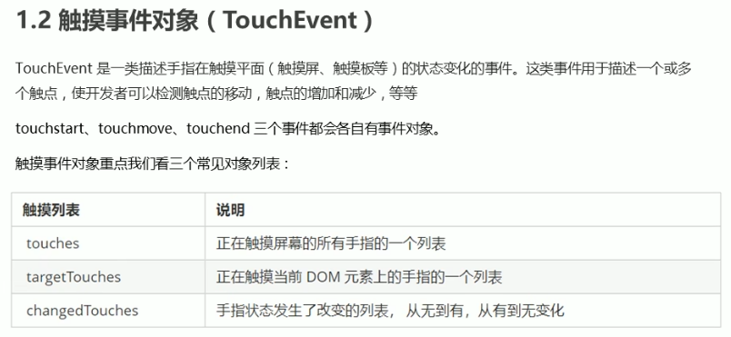 targetTouches包含了正在触碰DOM元素的信息,经常使用。