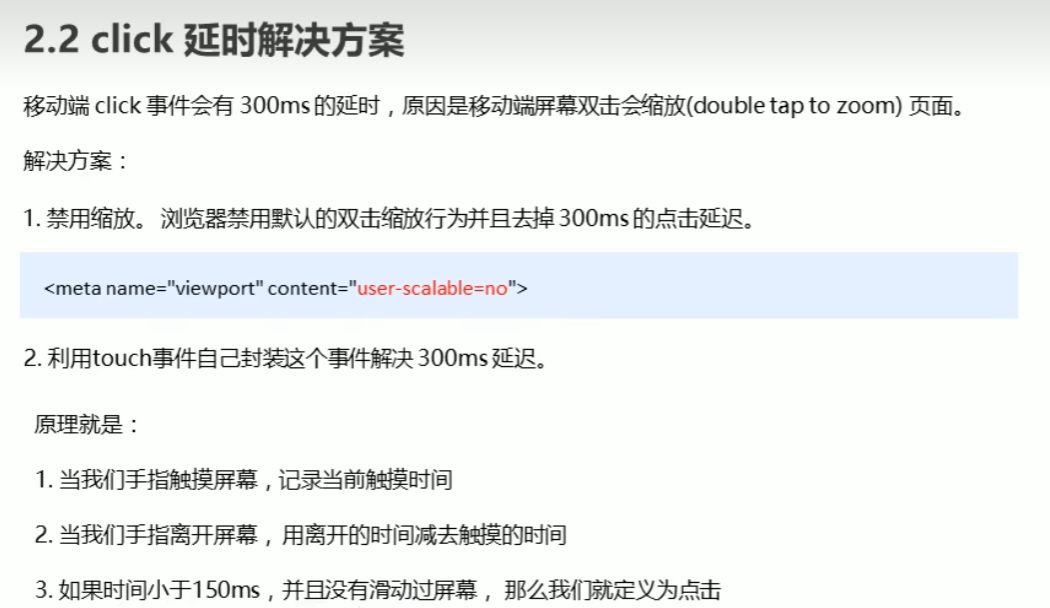 移动端click延时问题:移动端有双击屏幕缩放页面的需求!