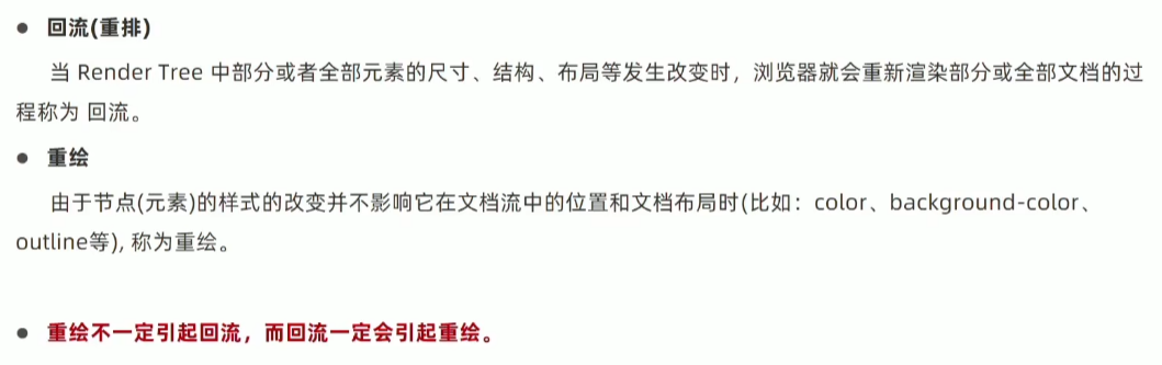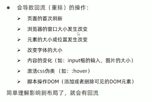回流:浏览器重新渲染页面。影响到布局就会回流!