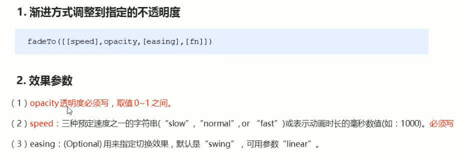 ④ 修改透明度:fadeTo()
