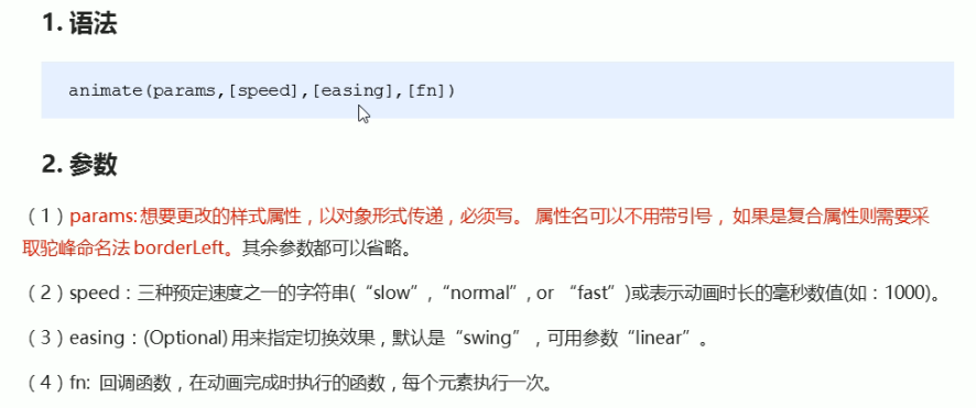 自定义动画animate:第一参数params不能省略,以对象形式修改属性