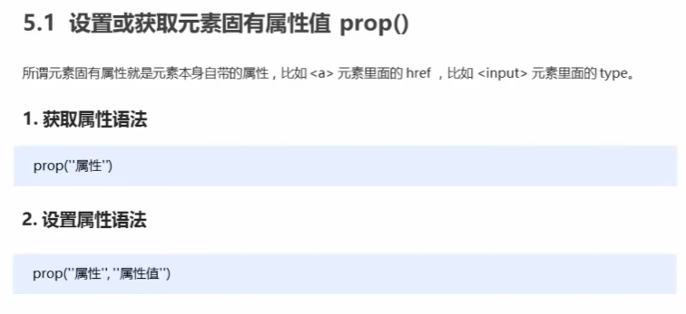 设置/获取元素固有属性:prop()只能获取元素本身自带属性!