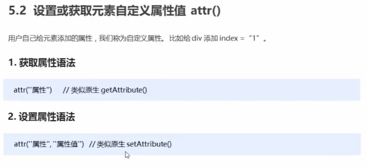 设置/获取元素自定义属性值:attr()类似原生的get/set Attribute()