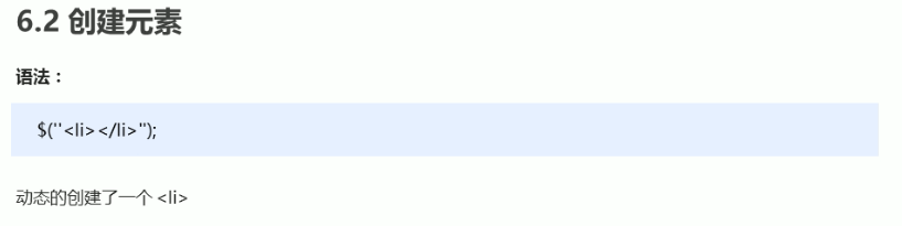 创建元素:$('html元素语句')