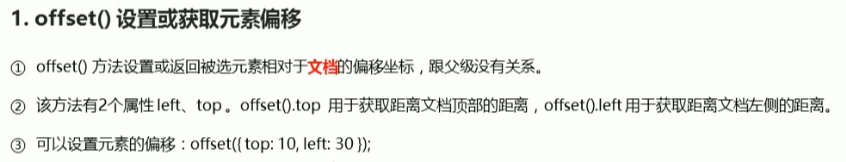 ① offset获取或设置偏移量:与父级无关,相对于文档。