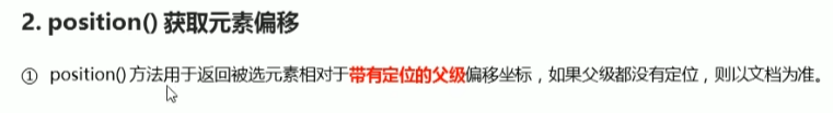 ② position获取相对于带有定位的父级的偏移量,若父级无定位则以文档为主。(只能获取不能设置!)