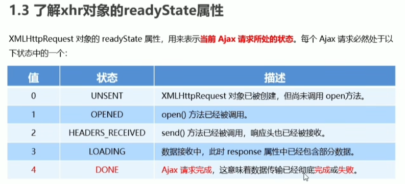 xhr对象的readyState属性:表示当前ajax请求的状态