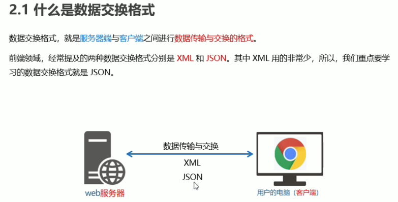 数据交换格式:服务器端和客户端进行数据传输和交换的格式。