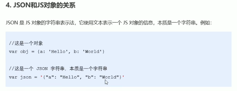 JSON和对象的关系:JSON就是对象的字符串表示法。