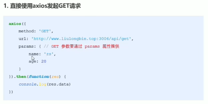 axios发起get请求:axios.get(url, {params: {data}}).then(callback)