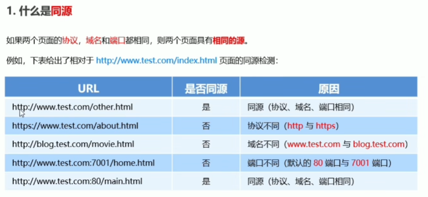 如果两个页面的协议、域名和端口都相同,则两个页面同源。