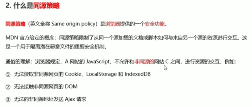 出现跨域原因:浏览器的同源策略不允许非同源的URL之间进行资源交互。