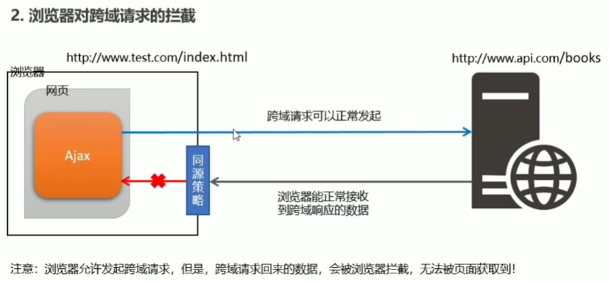 浏览器允许发起跨域请求,但是跨域请求回的数据会被浏览器的同源策略所拦截!