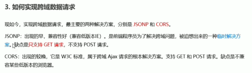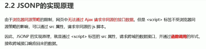 JSONP:解决浏览器的跨域访问问题。通过script标签的src属性,请求跨域的数据接口。