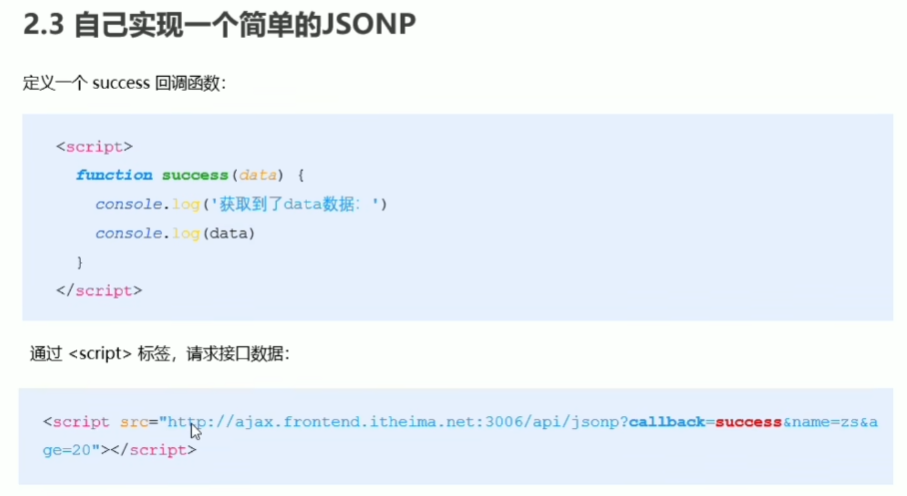 script标签的src属性,以查询字符串的方式告诉服务器调用的函数和参数,默认是get请求。