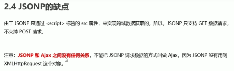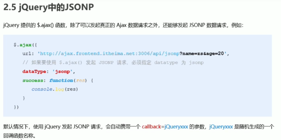 jQuery中的JSONP:如果使用$.ajax函数发起JSONP请求,必须指定dataType为jsonp。查询字符串中不需要加callback,jQuery会自动生成。